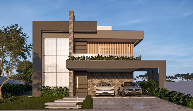 Com grandes volumes em balanço e uma fachada imponente, ela se destaca pelo uso elegante de materiais naturais como madeira, pedra e vidro, integrando-se ao paisagismo verde ao redor. O projeto foi pensado para máxima eficiência energética, aproveitando ao máximo a luz natural e a impressionante vista panorâmica de 270º da cidade. Cada detalhe foi planejado para oferecer o melhor em conforto, sustentabilidade e design.